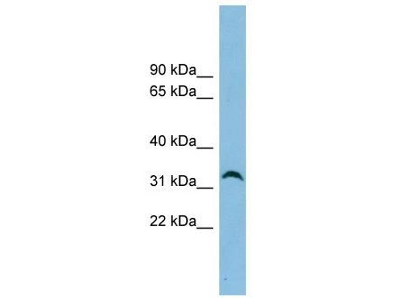 - 34 kDa (MW of target protein)