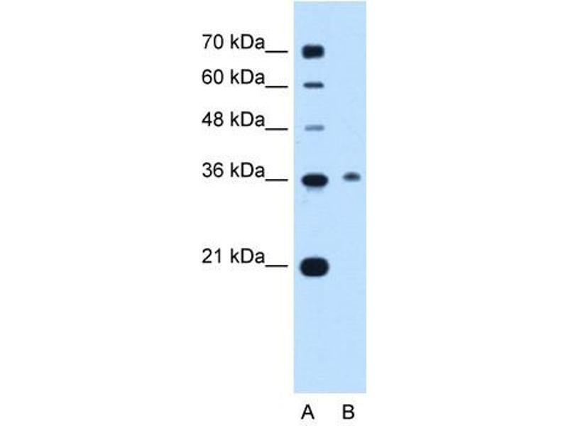 - 34 kDa (MW of target protein)