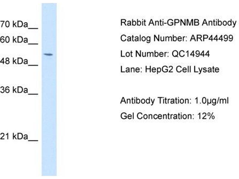 - GPNMB is a type I transmembrane glycoprotein which shows homology to the pMEL17 precursor, a melanocyte-specific protein. GPNMB shows expression in the lowly metastatic human melanoma cell lines and xenografts but does not show expression in the highly metastatic cell lines. GPNMB may be involved in growth delay and reduction of metastatic potential.
