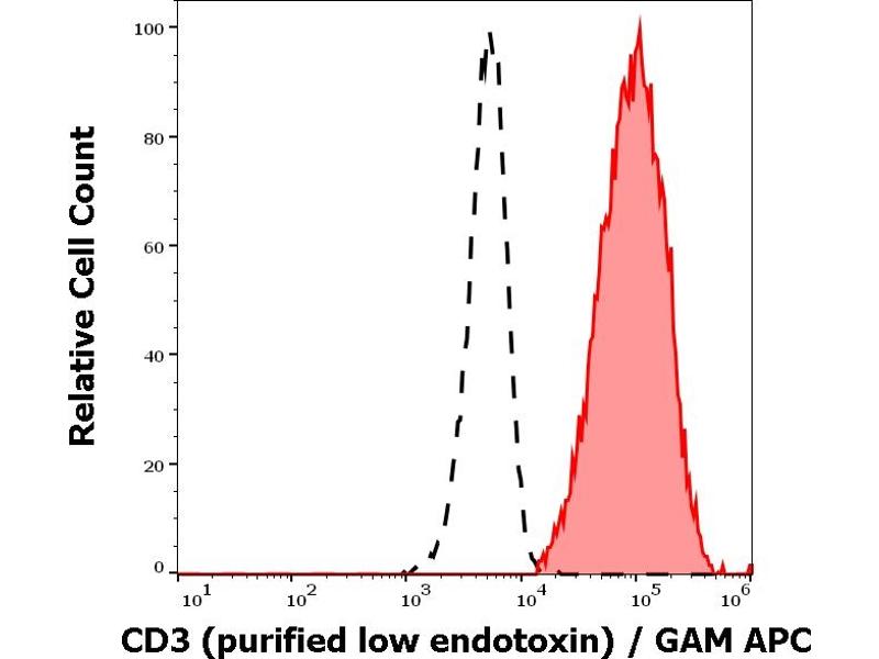 Flow cytometry: Recommended dilution: 1-4 μg/mL, positive control: peripheral blood lymphocytes, JURKAT human leukemia T cell line. -