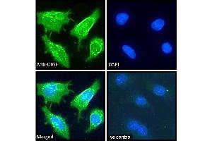 Immunofluorescence: Strong expression of the protein seen in the cytoplasm/membrane of NIH3T3 and HepG2 cells. Recommended concentration: 10μg/ml.