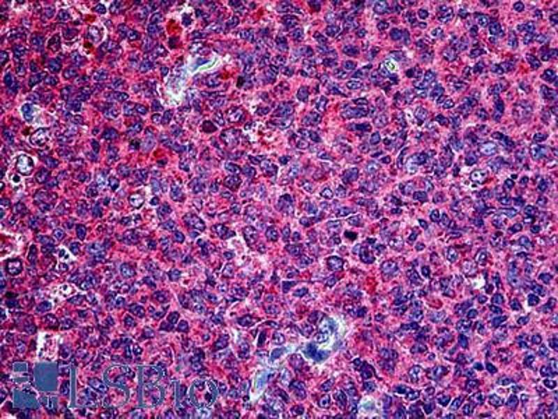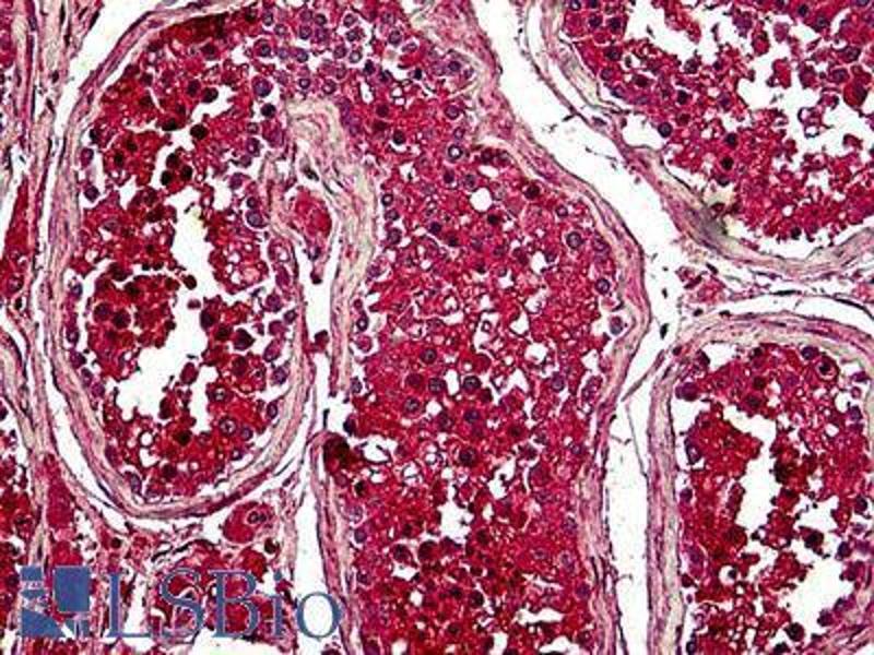 Immunohistochemistry: Paraffin embedded Human Tonsil and Testis. Recommended concentration: 2.5 μg/mL.
