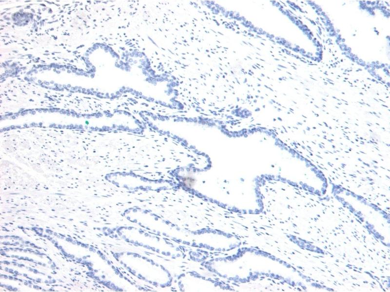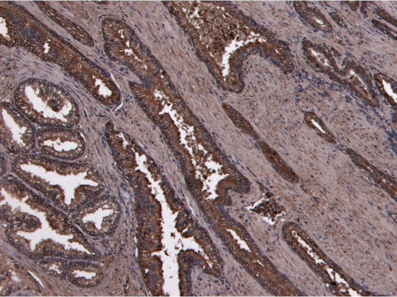 Immunohistochemistry: Paraffin embedded Human Prostate. Recommended concentration: 8 μg/mL.