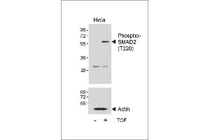 This SMAD2 Antibody is generated from rabbits immunized with a KLH conjugated synthetic phosphopeptide corresponding to amino acid residues surrounding T220 of human SMAD2.
