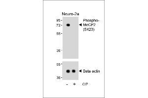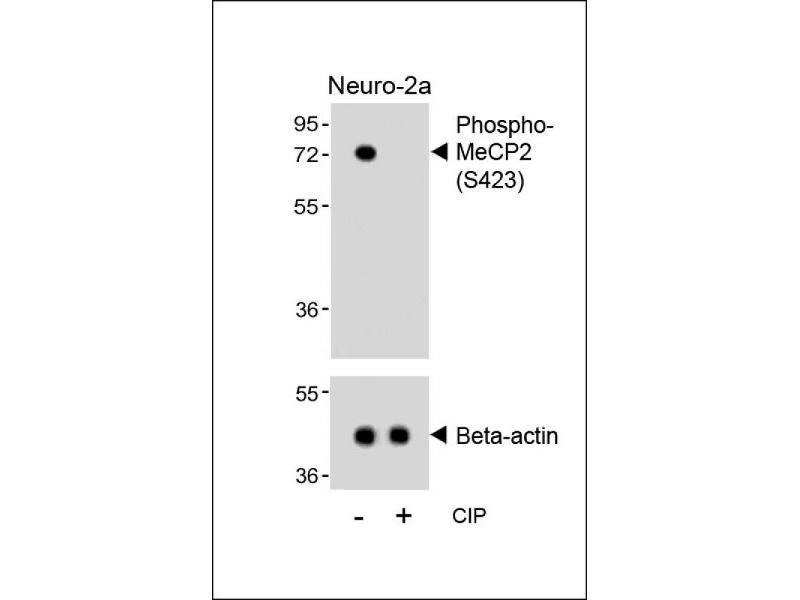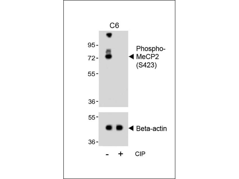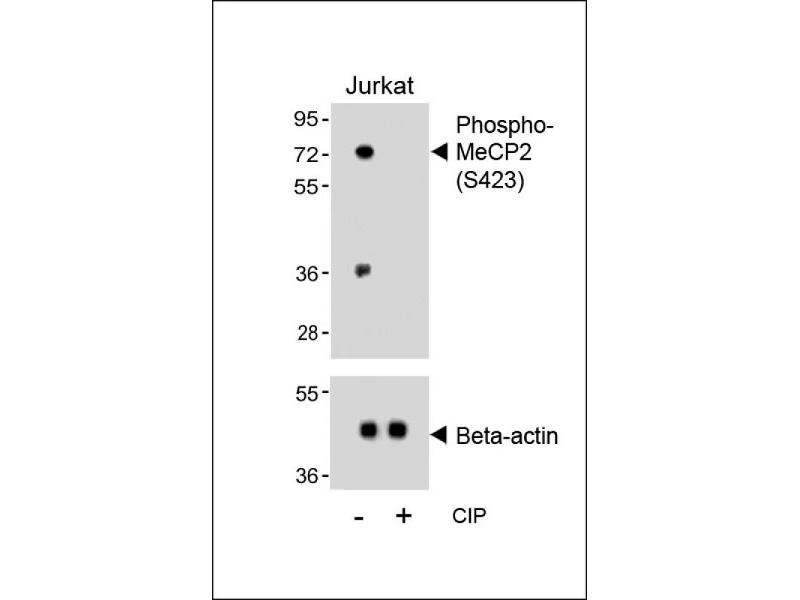 This MeCP2 Antibody is generated from rabbits immunized with a KLH conjugated synthetic phosphopeptide corresponding to amino acid residues surrounding S423 of human MeCP2.