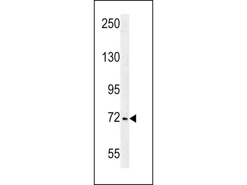This SHCBP1 antibody is generated from rabbits immunized with a KLH conjugated synthetic peptide between 500-528 amino acids from the C-terminal region of human SHCBP1.
