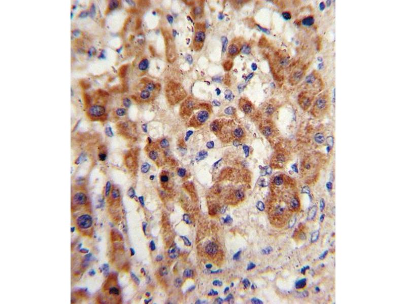 This NAT2 antibody is generated from rabbits immunized with a KLH conjugated synthetic peptide between 226-254 amino acids from the C-terminal region of human NAT2.