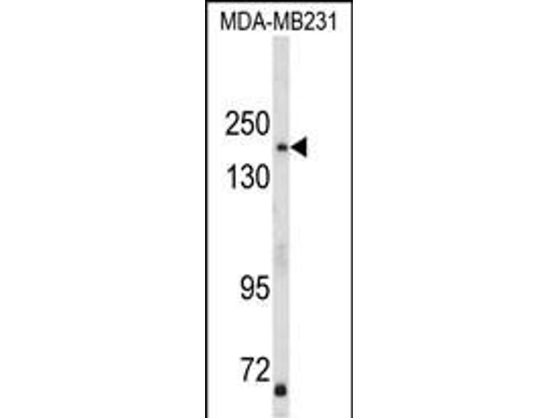 This TBC1D4 antibody is generated from rabbits immunized with a KLH conjugated synthetic peptide between 172-201 amino acids from the N-terminal region of human TBC1D4.