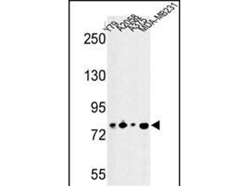 This CSRP2BP antibody is generated from rabbits immunized with a KLH conjugated synthetic peptide between 246-275 amino acids from the Central region of human CSRP2BP.