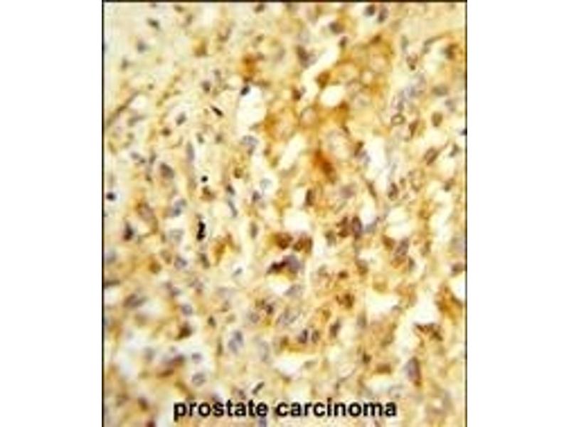 NKX3-1 is a transcription factor, which binds preferentially the consensus sequence 5'-TAAGT[AG]-3' and can behave as a transcriptional repressor. It play an important role in normal prostate development, regulating proliferation of glandular epithelium and in the formation of ducts in prostate. It Acts as a tumor suppressor controlling prostate carcinogenesis, as shown by the ability to inhibit proliferation and invasion activities of PC-3 prostate cancer cells.