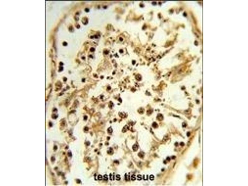 This TBX1 antibody is generated from rabbits immunized with a KLH conjugated synthetic peptide between 327-356 amino acids from the C-terminal region of human TBX1.