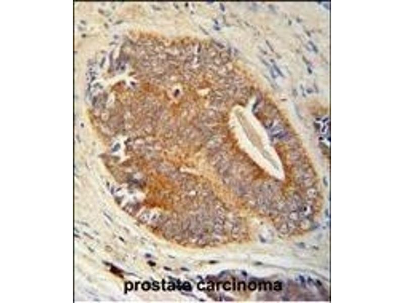 This GAGE7 antibody is generated from rabbits immunized with a KLH conjugated synthetic peptide between 87-116 amino acids from the C-terminal region of human GAGE7.