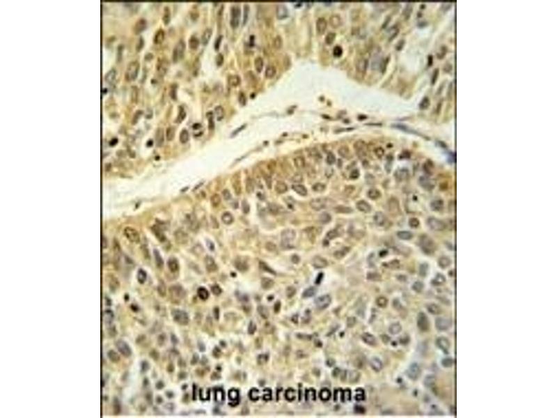 This RERE antibody is generated from rabbits immunized with a KLH conjugated synthetic peptide between 383-409 amino acids from the N-terminal region of human RERE.