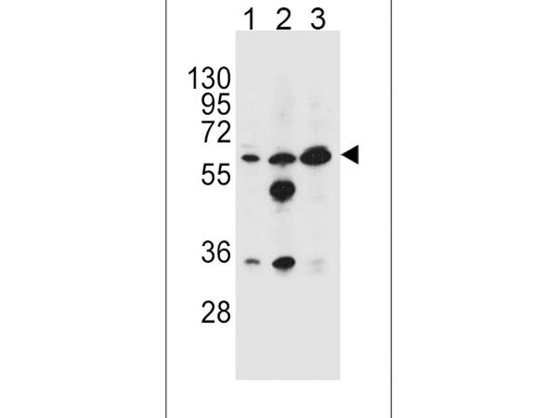 This GATM antibody is generated from rabbits immunized with a KLH conjugated synthetic peptide between 58-84 amino acids from the N-terminal region of human GATM.