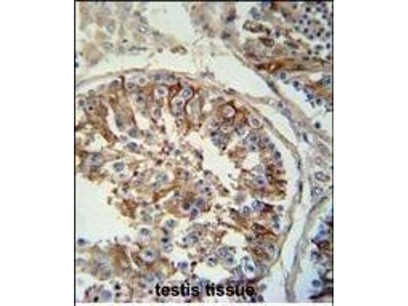 This SACA1 antibody is generated from rabbits immunized with a KLH conjugated synthetic peptide between 46-74 amino acids from the N-terminal region of human SACA1.