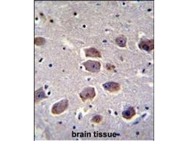 This NAT12 antibody is generated from rabbits immunized with a KLH conjugated synthetic peptide between 315-343 amino acids from the C-terminal region of human NAT12.