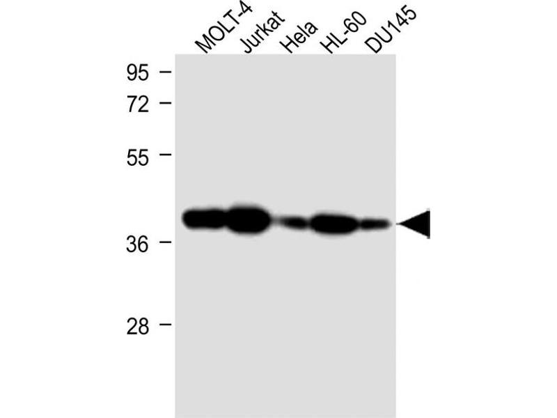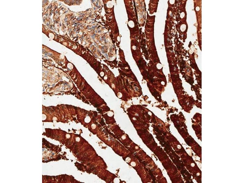 This ADA antibody is generated from rabbits immunized with a KLH conjugated synthetic peptide between 287-314 amino acids from the C-terminal region of human ADA.
