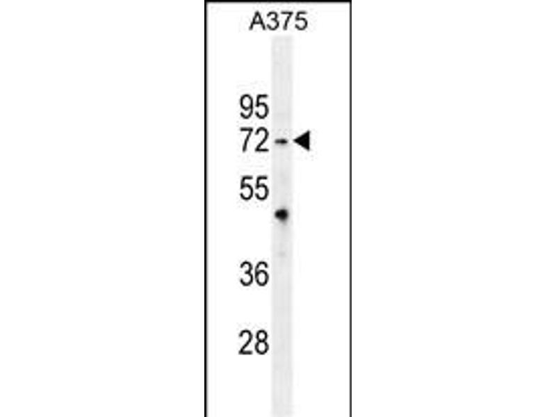 This TRIM56 antibody is generated from rabbits immunized with a KLH conjugated synthetic peptide between 727-755 amino acids from the C-terminal region of human TRIM56.