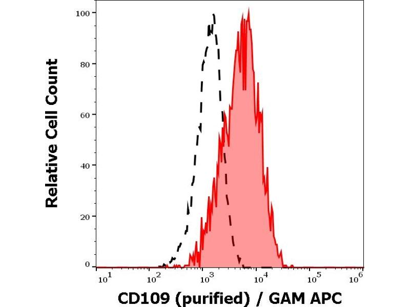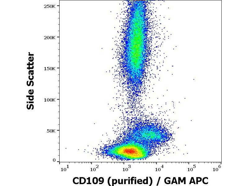 The mouse monoclonal antibody W7C5 recognizes CD109, an approximately 165 kDa GPI-anchored extracellular protein expressed mainly on various hematopoietic cells, activated T lymphoblasts, activated platelets, and endothelial cells.