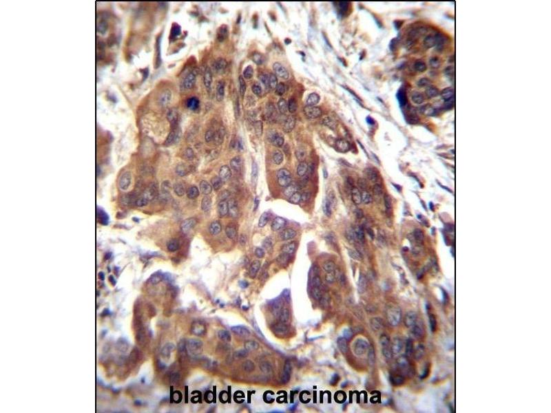 This GLMN antibody is generated from rabbits immunized with a KLH conjugated synthetic peptide between 498-525 amino acids from the C-terminal region of human GLMN.