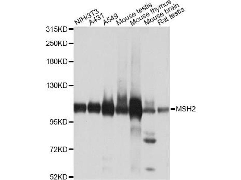 This Rabbit Polyclonal antibody specifically detects MSH2 in WB. It exhibits reactivity toward Human, Mouse and Rat.