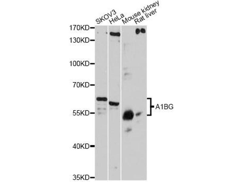This anti-A1BG antibody is a Rabbit Polyclonal antibody detecting A1BG in WB. Suitable for Human, Rat and Mouse.
