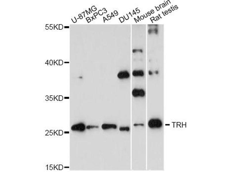 Background: This gene encodes a member of the thyrotropin-releasing hormone family. Cleavage of the encoded proprotein releases mature thyrotropin-releasing hormone, which is a tripeptide hypothalamic regulatory hormone. The human proprotein contains six thyrotropin-releasing hormone tripeptides. Thyrotropin-releasing hormone is involved in the regulation and release of thyroid-stimulating hormone, as well as prolactin. Deficiency of this hormone has been associated with hypothalamic hypothyroidism.