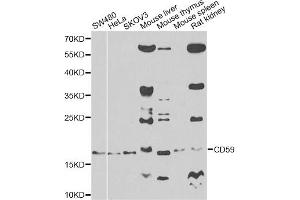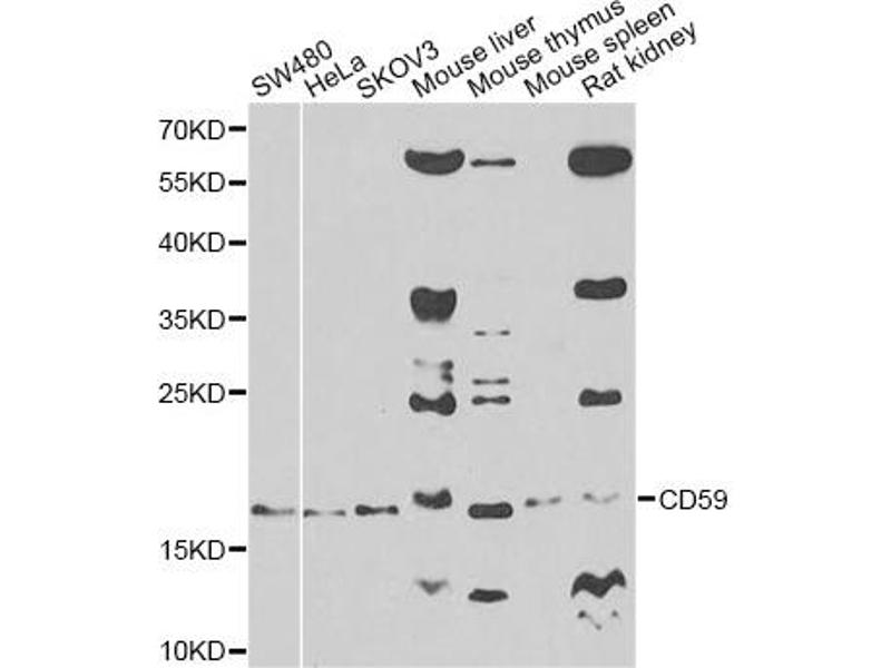 This Rabbit Polyclonal antibody specifically detects CD59 in IHC. It exhibits reactivity toward Human, Mouse and Rat.