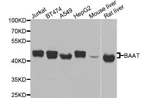 Synonyms: FLJ20300,BAAT,BAAT,BACAT,BAT,Bile acid CoA: amino acid N-acyltransferase (glycine N-choloyltransferase),Bile acid CoA:amino acid N acyltransferase,Bile acid Coenzyme A amino acid N acyltransferase glycine N choloyltransferase,Bile acid Coenzyme A: amino acid N acyltransferase,Bile acid-CoA:amino acid N-acyltransferase,Glycine N choloyltransferase,Glycine N-choloyltransferase,Long chain fatty acyl CoA hydrolase,Long-chain fatty-acyl-CoA hydrolase,MGC104432