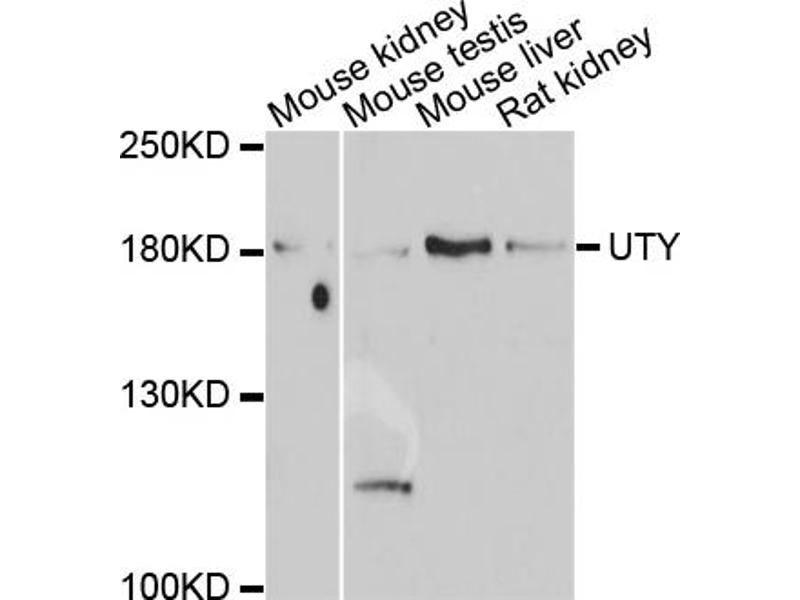 Synonyms: Histone demethylase UTY,Ubiquitously transcribed TPR protein on the Y chromosome,Ubiquitously transcribed Y chromosome tetratricopeptide repeat protein,Ubiquitously-transcribed TPR protein on the Y chromosome,Ubiquitously-transcribed Y chromosome tetratricopeptide repeat protein,UTY,UTY