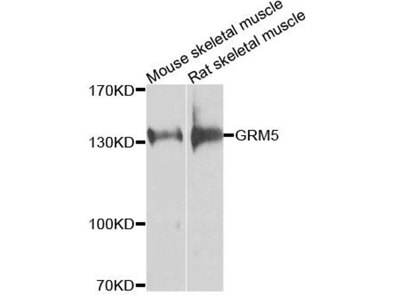 This anti-Metabotropic Glutamate Receptor 5 antibody is a Rabbit Polyclonal antibody detecting Metabotropic Glutamate Receptor 5 in WB. Suitable for Rat, Human and Mouse.