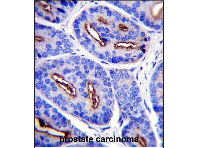 This FOLH1 antibody is generated from rabbits immunized with a KLH conjugated synthetic peptide between 161-190 amino acids from the N-terminal region of human FOLH1.