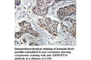 The Rabbit anti-ARHGEF16 antibody has been validated for WB, ELISA and IHC. It is suitable to detect ARHGEF16 in samples from Human.