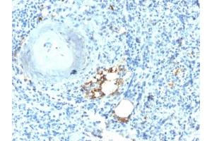 1. The prediluted format is supplied in a dropper bottle and is optimized for use in IHC. After epitope retrieval step (if required), drip mAb solution onto the tissue section and incubate at RT for 30 min.\. Immunohistochemistry (FFPE): 0.5-1 μg/mL for 30 min at RT