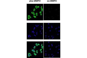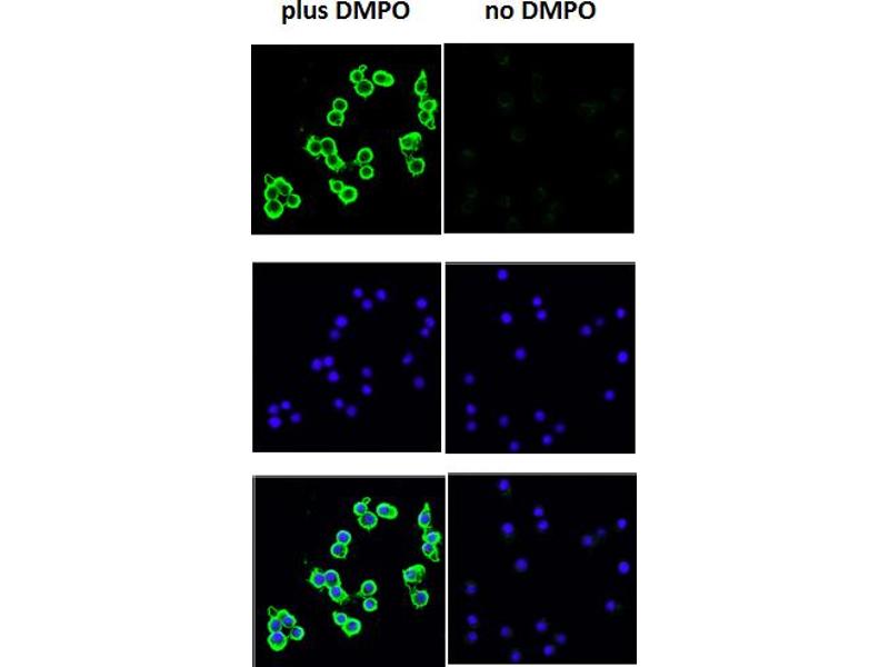 - DMPO Antibody was produced in mice by repeated immunizations with 5,5-dimethyl-2-(8-octanoic acid)-1-pyrrolone-N-oxide conjugated to Ovalbumin.