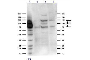 Anti-Integrin beta-3 Antibody has been tested in Western Blot, ELISA and IHC. Positive control lysates used U-87 p/n (W09-001-GX2) and MDA-MB-435 p/n (W09-001-A39) @ 1μg/mL in WB. Expect possible bands at ~80, 100 and 130 kDa in western blot using appropriate lysates. Immunohistochemistry application with human breast carcinoma tissue is recommended. Although not tested, this antibody is likely functional in flow cytometry and immunoprecipitation. This antibody is not recommended in immunofluorescence detection.