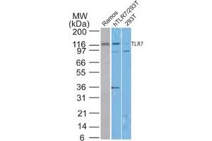 Anti-TLR7 Antibody is tested for use in WB, Flow, Flow-IC, ICC/IF, and IHC. Expect a band approximately 121kDa on specific lysates. Specific conditions for reactivity should be optimized by the end user.