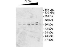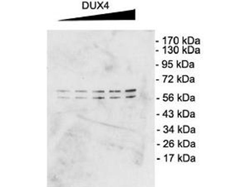 - DUX4 Antibody was produced in mice by repeated immunizations with a recombinant protein corresponding to the C-terminal region of human DUX4 protein.