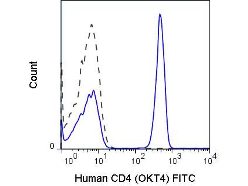 - Fluorescein conjugated CD4 Monoclonal Antibody was purified from tissue culture supernatant via affinity chromatography and is directed against human CD4.