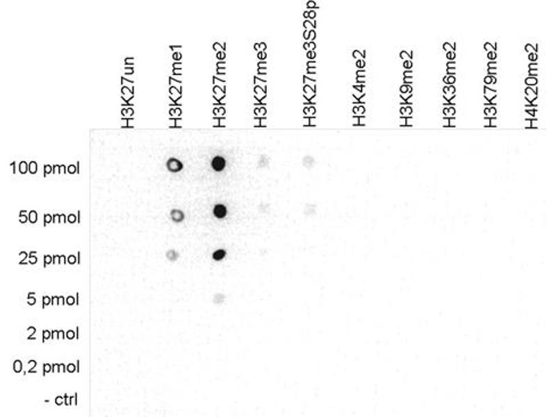 - This product reacts with human Histone 3 dimethyl Lys27.