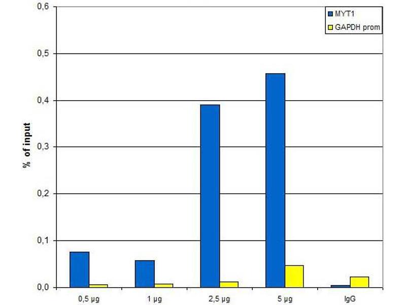 Background: EZH2 is a histone-lysine methyltransferase which methylates 'Lys-9' and 'Lys-27' of histone H3, leading to transcriptional repression. It is a member of the polycomb group (PcG) family which form multimeric protein complexes and are involved in maintaining the transcriptional repressive state of genes over successive cell generations. The EZH2 activity is dependent on the association with other components of the PRC2 complex (EED, EZH2, SUZ12/JJAZ1, RBBP4 and RBBP7). EZH2 may play a role in the hematopoietic and internal nervous systems. Over-expression of EZH2 is observed during advanced stages of prostate cancer and breast cancer. Anti-EZH2 Antibody is ideal for research in Epigenetics, Gene Expression, Cell Biology and Cancer.