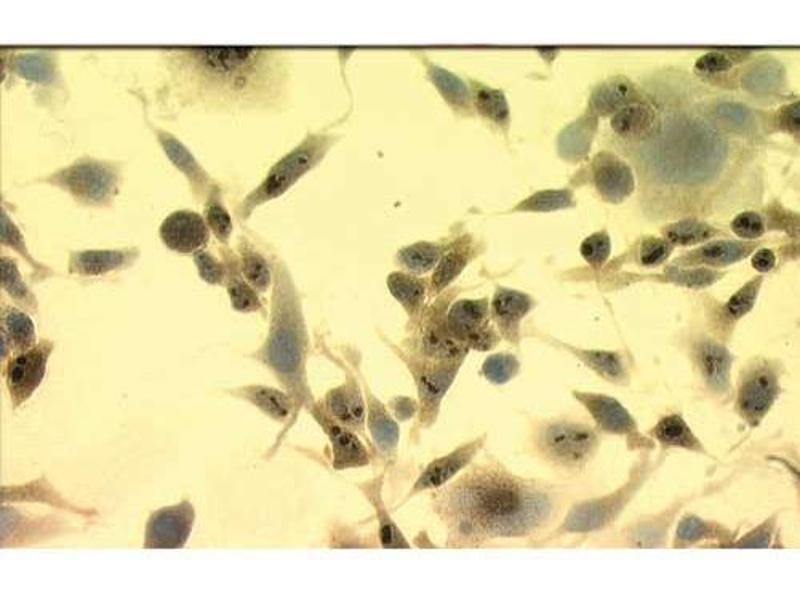 Background: Anti-Hsp 70 antibody is routinely used in cancer and signal transduction research. Hsp70 genes encode abundant heat-inducible 70- kDa hsps (hsp70s). In most eukaryotes, hsp70 genes exist as part of a multigene family. Hsp70s are found in most cellular compartments of eukaryotes, including nuclei, mitochondria, chloroplasts, the endoplasmic reticulum and the cytosol, as well as in bacteria. The genes show a high degree of conservation, having at least 50 % identity (2). The N-terminal two-thirds of hsp70s are more conserved than the C-terminal one-third. Hsp70 binds ATP with high affinity and possesses a weak ATPase activity which can be stimulated by binding to unfolded proteins and synthetic peptides (3). When hsc70 (constitutively expressed) present in mammalian cells was truncated, ATP binding activity was found to reside in an N-terminal fragment of 44 kDa which lacked peptide binding capacity. Polypeptide binding ability therefore resided within the C-terminal half (4). The structure of this ATP binding domain displays multiple features of nucleotide binding proteins (5). All hsp70s, regardless of location, bind proteins, particularly unfolded ones. The molecular chaperones of the hsp70 family recognize and bind to nascent polypeptide chains as well as partially folded intermediates of proteins, preventing their aggregation and misfolding. The binding of ATP triggers a critical conformational change leading to the release of the bound substrate protein (6). The universal ability of hsp70s to undergo cycles of binding to and release from hydrophobic stretches of partially unfolded proteins determines their role in a great variety of vital intracellular functions such as protein synthesis, protein folding and oligomerization, and protein transport.