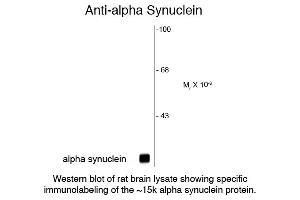 Alpha Synuclein antibody is tested for use in Western Blotting and IF. Specific conditions should be optimized by the end user. Expect a band of approximately 15 kDa in size corresponding to the alpha synuclein proteins in the appropriate cell lysate or extract.