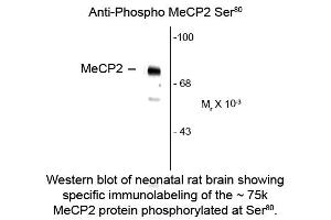 - This antibody is specific for the ~75 kDa MECP2 protein phosphorylated at Ser 80 in Western blots of human, rat and mouse brain extracts.