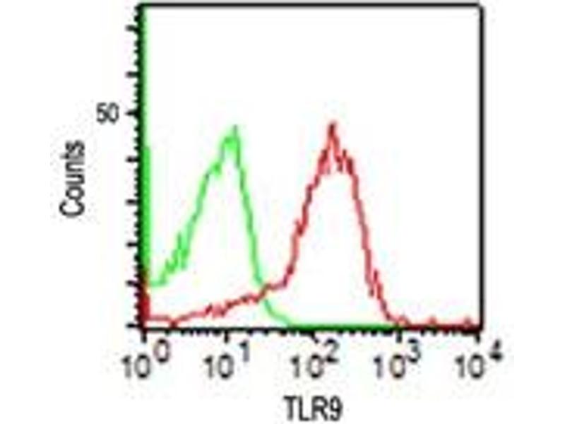 - TLR9 Antibody was produced in mice prepared repeated immunizations with amino acids corresponding to an internal sequence of human TLR9 isoform A protein.