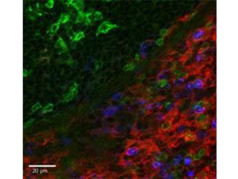 Background: CD11b is a 170 kD glycoprotein also known as αM integrin, Mac-1 α subunit, Mol, CR3, and Ly-40. CD11b is a member of the integrin family, primarily expressed on granulocytes, monocytes/macrophages, dendritic cells, NK cells, and subsets of T and B cells. CD11b non-covalently associates with CD18 (β2 integrin) to form Mac-1. Mac-1 plays an important role in cell-cell interaction by binding its ligands ICAM-1 (CD54), ICAM-2 (CD102), ICAM-4 (CD242), iC3b, and fibrinogen.
