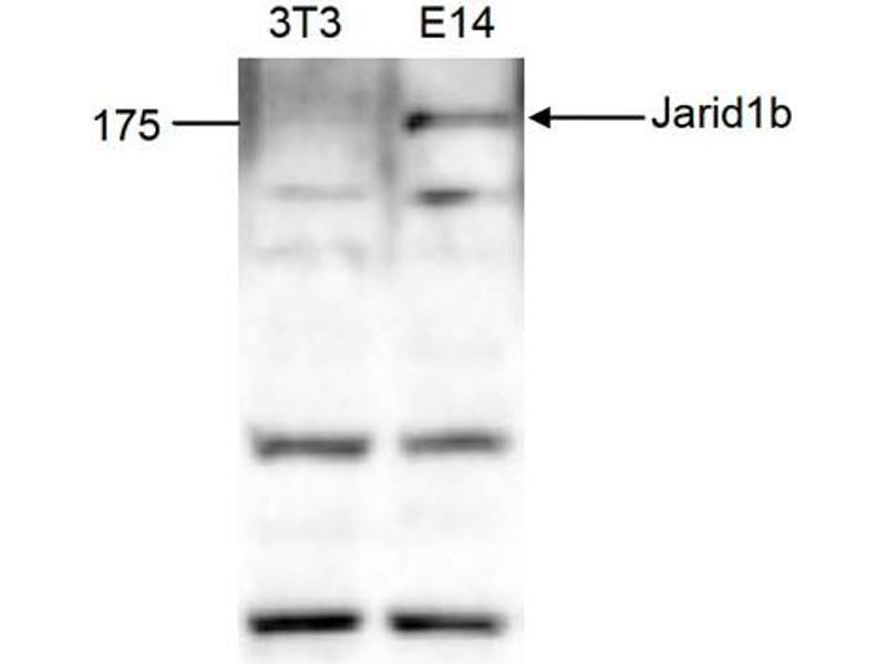 Anti-Jarid1b Antibody has been tested by ELISA and Western Blots. Specific conditions for reactivity should be optimized by the end user. Expect a band approximately 175 kDa in the appropriate cell lysate or extract.