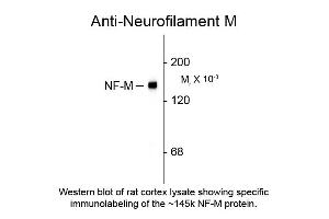 Anti- Neurofilament M antibody is tested for use in Western Blotting and IF. Specific . Expect a band of approximately 145 kDa in size corresponding to NF-M proteins in the appropriate cell lysate or extract. Researchers should determine optimal titers for applications that are not stated below. -