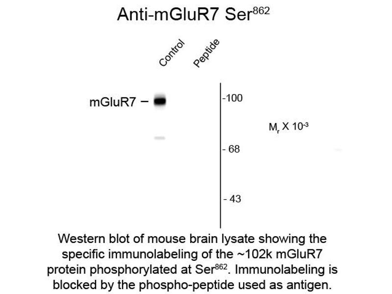 - Anti mGluR7 pS862 antibody is directed against mGluR7 phosphorylated at Ser862.