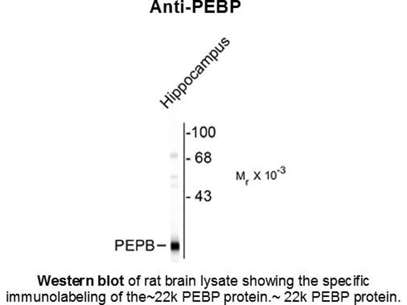 Synonyms: rabbit anti-Anti-PEBP, rabbit anti-phosphatidylethanolamine binding protein, 23 kDa morphine-binding protein, HCNPpp, P23K